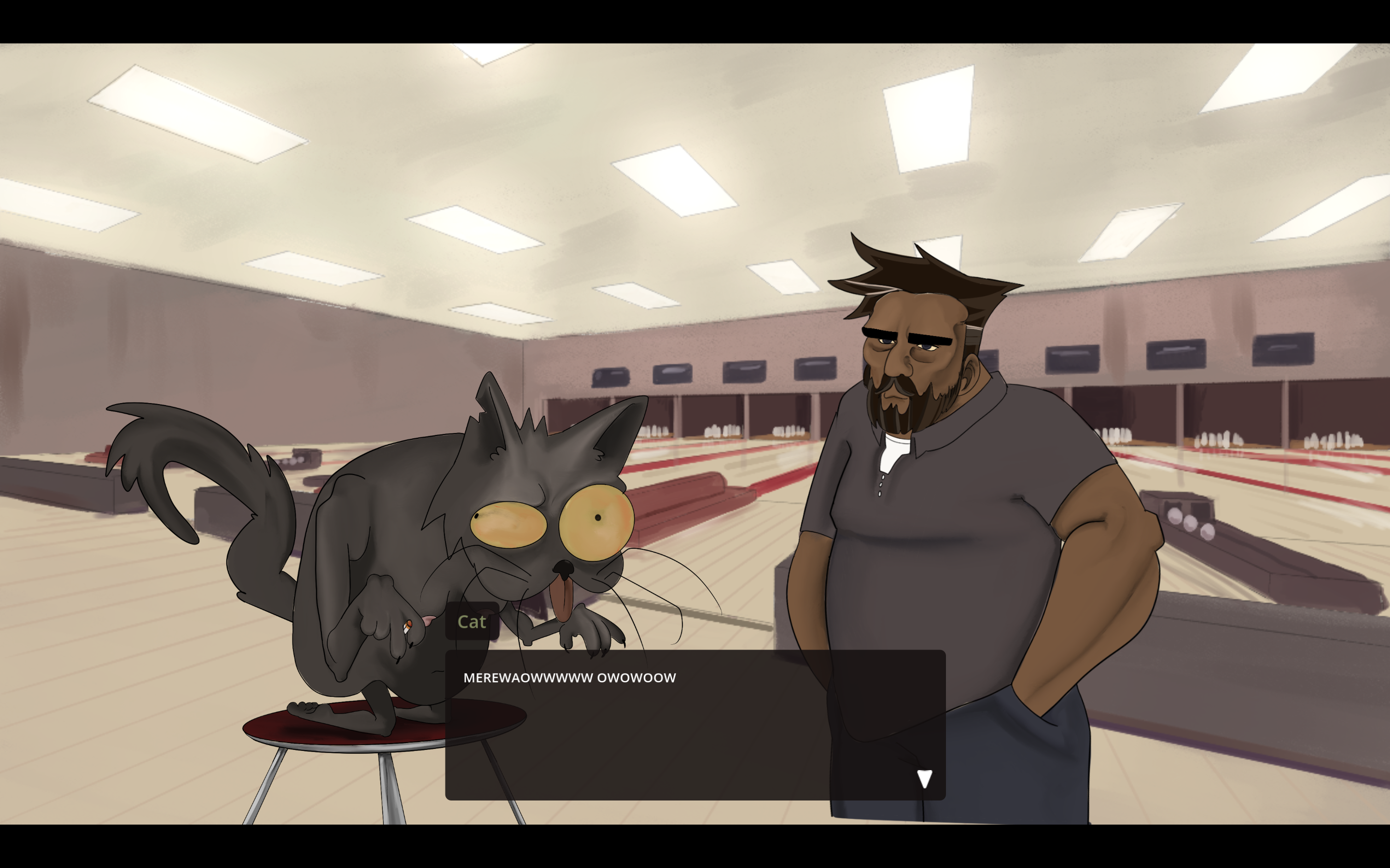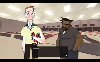 A super good ( ;D ) visual novel following the adventure of a divorced dad (you) going bowling (bolling) at your local alley (bolling).... only for disaster to strike, forcing you to form a relationship with someone, as is traditional for the visual novel genre. Boll proud.